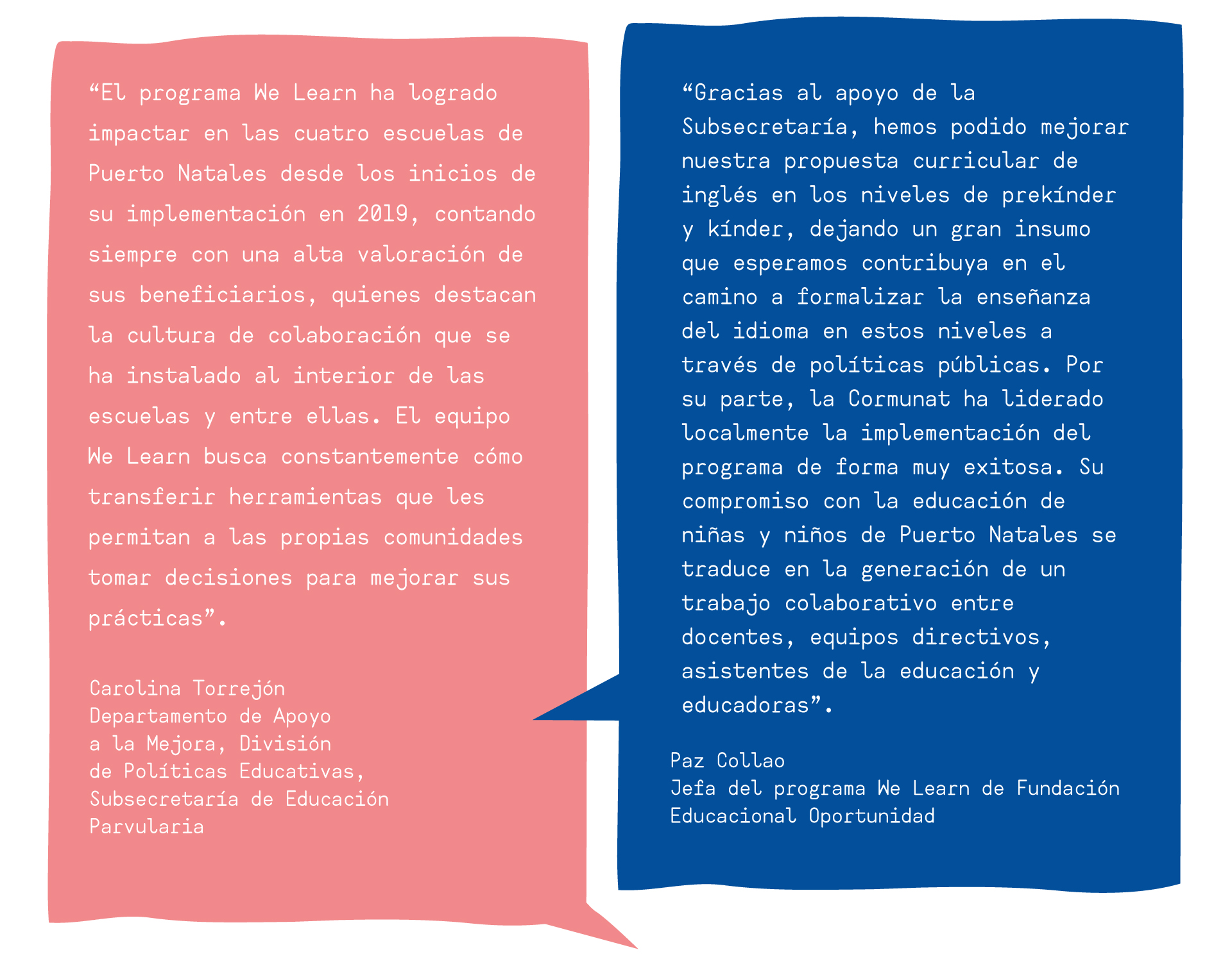 “Gracias a que se implementó el piloto hemos podido perfeccionar y ajustar nuestras actividades. Pudimos identificar las necesidades particulares de cada contexto educativo y hacer ajustes para darles respuesta. Es importante destacar que el curso Together We Learn trabaja en conjunto con los equipos educativos para que el aprendizaje y el proceso sean significativos”.